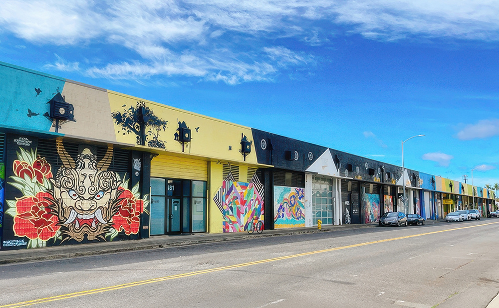 Kakaako is one of Hawaii’s most stylish spots for wall art, making it a must-visit destination.
