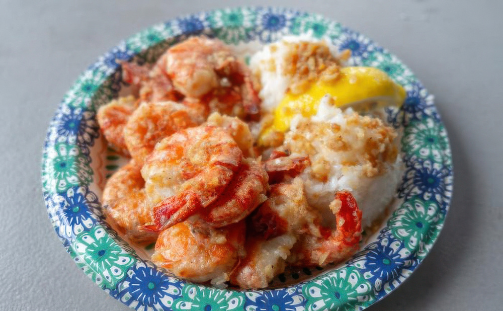 There is no other plate lunch that beats this exquisitely seasoned garlic shrimp.