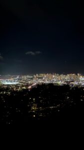 ツアーの最後にはハワイNo.1夜景のおまけつき!タンタラス単体のツアーもありますが、結構いいお値段しますので、ツアーに付いていると多くの方が喜んでくれます。夏のシーズンは夕景、冬のシーズンは夜景となり、時期によって景色が変わります。今回はちょうど夕景と夜景の間くらいの雰囲気でした!雲が少し多い日でしたが、丘全体が雲で覆われていなければいつでも綺麗に見れます。